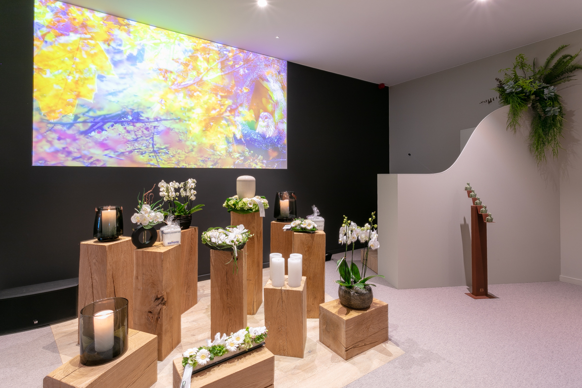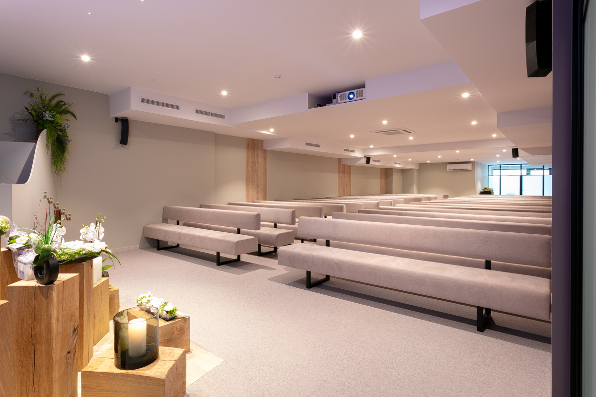 Fraeyman Uitvaart beschikt over een aula, genaamd meditorium ‘Het Licht’. Deze biedt plaats aan 300 personen. De aula kan gebruikt worden voor plechtigheden van alle geloofsovertuigingen. Met de modernste audio-visuele apparatuur bieden wij u alle mogelijkheden op het gebied van audio-en beeldweergave. Alles wordt door ons samengesmolten tot een stijlvol afscheid.